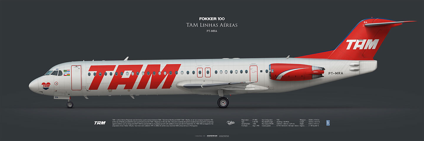 Если Fokker F27 был рабочей лошадкой региональных перевозок, то Fokker 100 стал резвым скакуном национальной экспансии. Этот изящный реактивный самолёт вместимостью до 100 пассажиров был создан для коротких и средних рейсов. Его красно-белая ливрея с логотипом TAM стала узнаваемой по всей Бразилии, а сам самолёт – символом качества и надёжности.